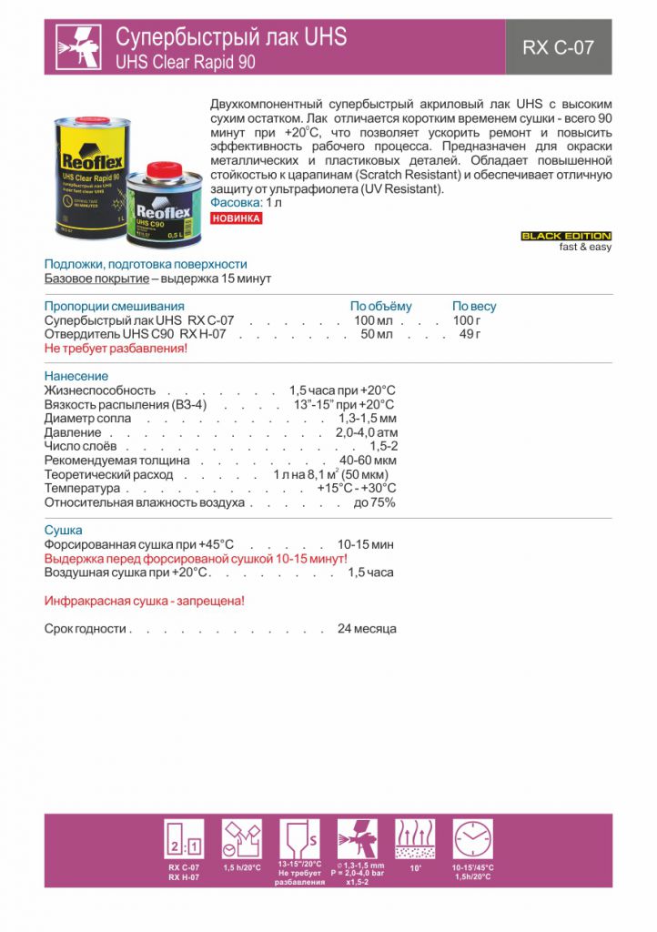 - RX C-07 Лак + RX Н-07 REOFLEX UHS C90 Отвердитель