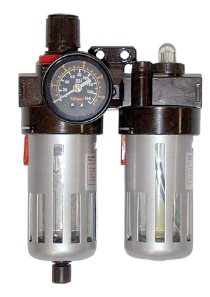 Прибор для подготовки воздуха 1/2". Специальные металлические колбы обеспечивают особенную защиту для фильтра и лубрикатора.