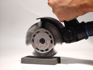 Обдирочно-зачистные машинки МВХ, имеют уникальную особенность - все насадки МВХ можно неоднократно затачивать. За счет нового затачивания проволочных концов можно без труда восстановить первоначальную эффективность щеточной ленты МВХ. Ни у одного из наиболее используемого в этой области инструмента затачивание щетки не предусмотрено! Причем процедура достаточна проста: черные и голубые ленты затачиваются в обратном направлении вращения с легким нажимом, примерно 15 секунд по точильному камню. После этого необходимо вновь переставить щеточную ленту МВХ в правильное рабочее направление.