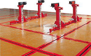 Вмонтированная в пол рама KOREK совершенно не занимает места в цеху, что имеет большое значение для небольших кузовных цехов. Установка автомобиля осуществляется подкатным домкратом высокого подъема или встроенным подъемником (арт. STL 2602 на 2,5 тонн или STL 3000 на 3 тонны). Рама размещается в приямке, выставляется по горизонтали заподлицо с полом и заливается бетоном плотностью не менее 350 кг/см2.
