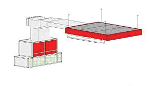 Полупленум, подвешиваемый к потолку на вантах Производительность вентиляционной системы 20.000 m3/ч Люминесцентное освещение Рециркулятор Диагональный поток (вытяжка в вент. блок)